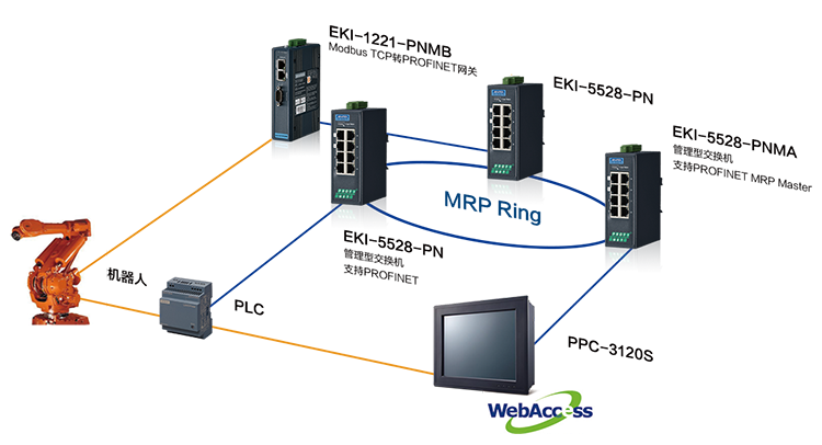 ▌▌方案設(shè)計(jì)為滿足客戶定制開發(fā)軟件的需求,研華科技推薦PPC-3120S+WebAccess/HMI,其中PPC-3120S 是基于X86架構(gòu)的硬件平臺(tái)一體機(jī),通用性強(qiáng)同時(shí)具備較好的擴(kuò)展功能(可以外接各種外設(shè),例如:條碼槍 顯示器 打印機(jī)等等),并且可市面上大部分品牌的PLC 直接連接通訊 。與PPC-3120S搭配應(yīng)用的研華Webacces/HMI人際界面軟件,不僅具備強(qiáng)大的圖形界面數(shù)據(jù)庫,可提供友好的易于整合的開發(fā)工具。最重要的是可以支持客戶需求的軟件定制,滿足客戶特殊化要求。另外PPC-3120S采用全平面觸摸屏設(shè)計(jì),機(jī)身美觀,緊湊輕薄,適用于客戶現(xiàn)場(chǎng)多種安裝方式。同時(shí)兼具獨(dú)特的智能E-eye設(shè)計(jì),可監(jiān)測(cè)一體機(jī)各個(gè)接口正常與否狀態(tài)。 為實(shí)現(xiàn)PPC-3120S與客戶現(xiàn)有PLC設(shè)備的通訊,研華科技推薦EKI-5500/5600系列協(xié)議交換機(jī)+EKI-1221IEIMB和EKI-1221PNMB協(xié)議網(wǎng)關(guān)的解決方案。在此方案中EKI-5500/5600系列協(xié)議交換機(jī),支持Profinet、EtherNet/IP和Modbus/TCP,提供跨協(xié)議通訊,實(shí)現(xiàn)設(shè)備、PLC、中控室等平臺(tái)系統(tǒng)間的有效溝通。EKI-1221IEIMB和EKI-1221PNMB協(xié)議網(wǎng)關(guān)設(shè)備,支持Modbus TCP to Profinet或EtherNet/IP, 提供協(xié)議轉(zhuǎn)換, 兼容現(xiàn)有設(shè)備,無需采購昂貴的新設(shè)備。