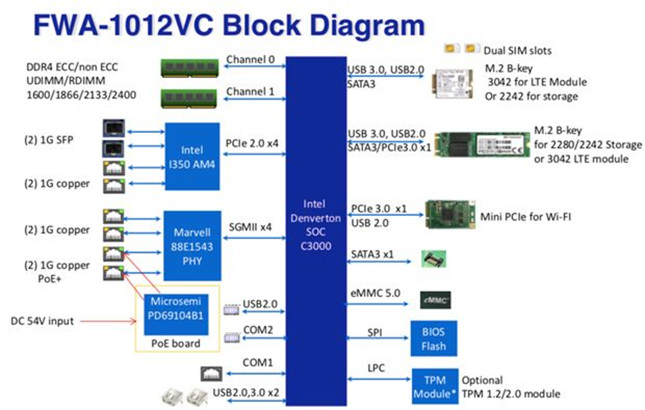 考慮到上述因素,客戶選擇了研華網(wǎng)絡(luò)應(yīng)用平臺FWA-1012vc作為其軟件方案的硬件架構(gòu),并通過LTE和wifi模塊支持蜂窩和WiFi網(wǎng)絡(luò),和有線網(wǎng)絡(luò)實現(xiàn)鏈路備份。