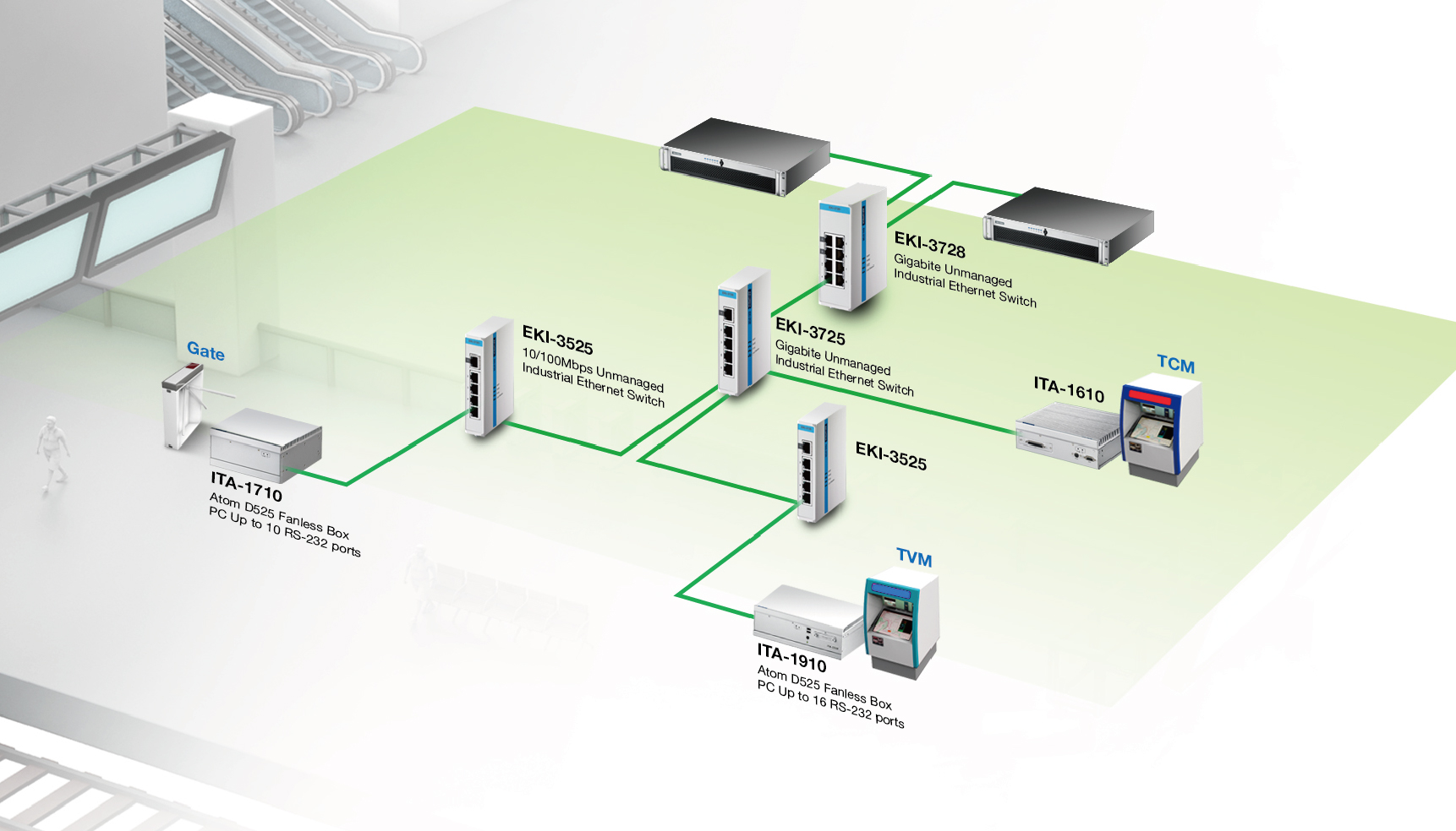 ▌▌圖表 下面的系統(tǒng)類型說(shuō)明了自動(dòng)票價(jià)收集系統(tǒng)的運(yùn)行方式。ITA-1710嵌入了TVM和AGM作為控制器,并且可以通過(guò)工業(yè)以太網(wǎng)EKI訪問(wèn)并傳輸數(shù)據(jù)到后端控制中心。